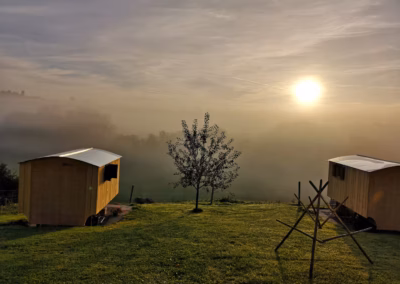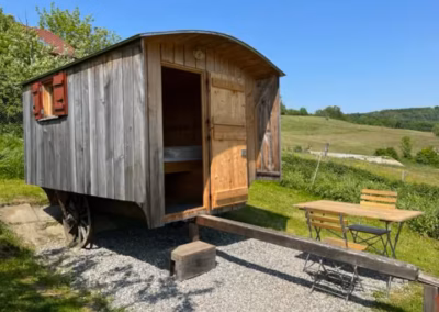 Unsere Schäferwagen bieten eine außergewöhnliche Übernachtung mitten in der Natur – ruhig, entschleunigt und mit einzigartiger Aussicht.