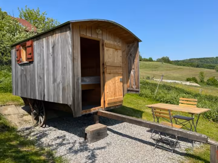 Erleben Sie eine besondere Auszeit mitten in der Natur und übernachten Sie in unserem liebevoll eingerichteten Schäferwagen in ruhiger Lage.